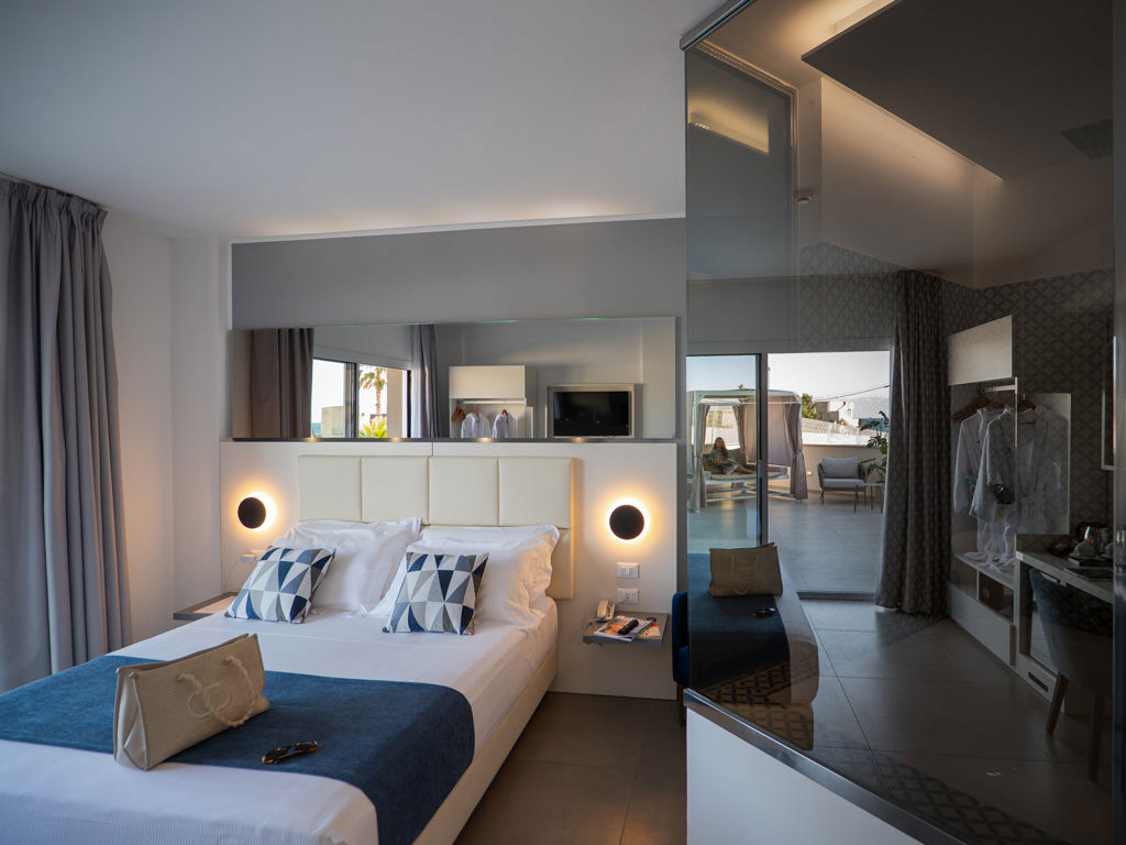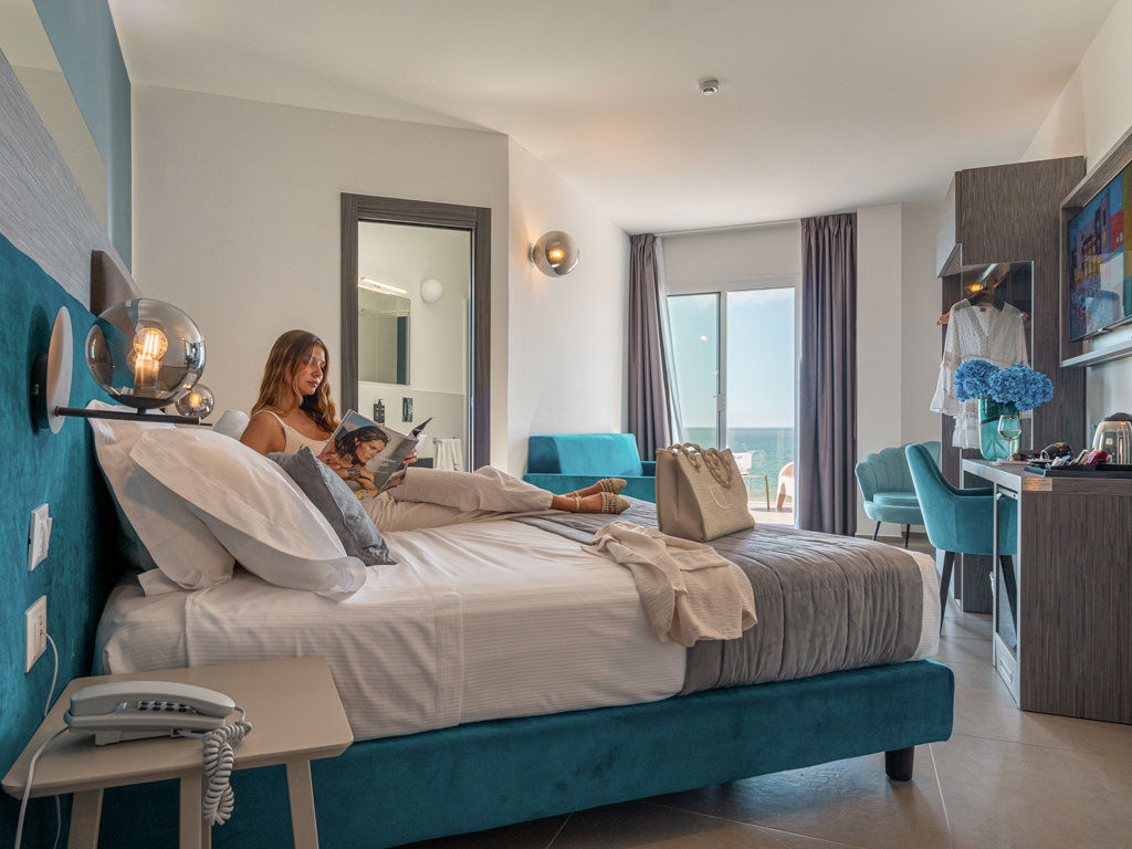 An oasis of peace and calm, where to spend a quiet stay, cheered up by the sea view and large, comfortable spaces: the Junior Suites of the resort accommodate couples, families or small groups in the name of charm and comfort.