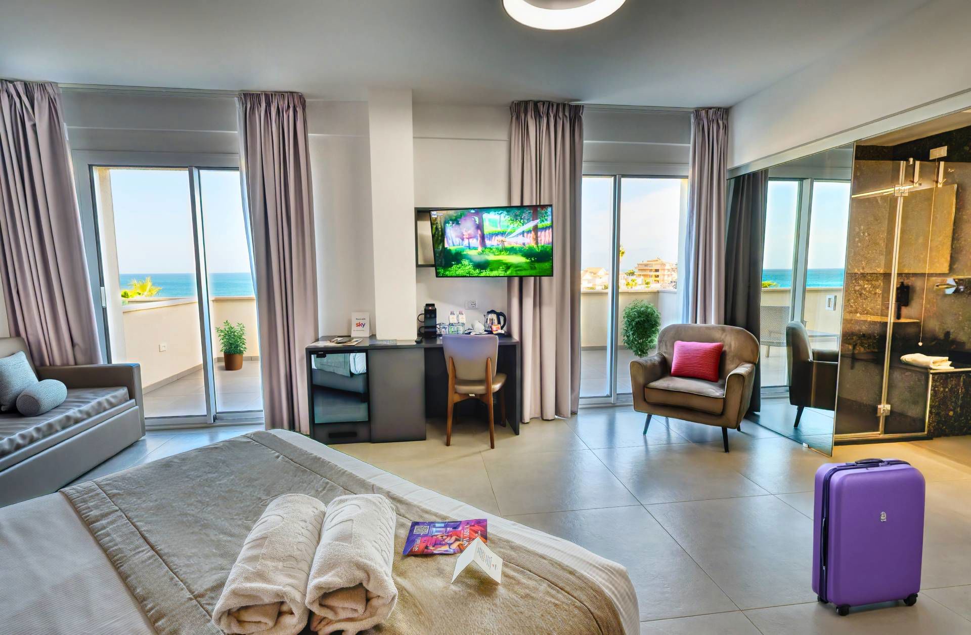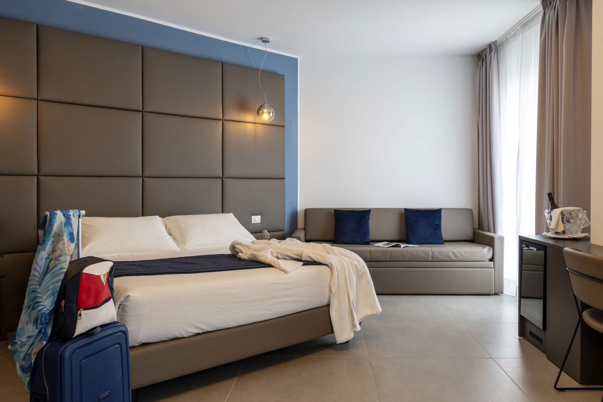 An oasis of peace and calm, where to spend a quiet stay, cheered up by the sea view and large, comfortable spaces: the Junior Suites of the resort accommodate couples, families or small groups in the name of charm and comfort.